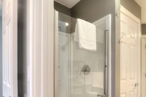 After a day of adventure, retreat to the private bedroom, which features a King bed and ample closet space. The bathroom invites you to unwind in the roomy, jetted soaker tub or the separate shower.