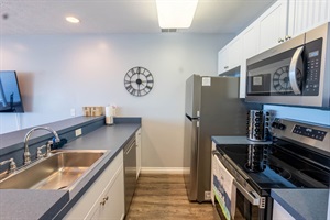 -Fully equipped kitchen with stainless steel appliances