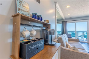 Step into a bright, open living area where large windows flood the space with natural light and showcase breathtaking water views. The comfortable living room is perfect for relaxing after a day of exploring, complete with a smart TV and high-speed Wi-Fi. Step out onto your private balcony to enjoy a morning coffee with the sunrise or an evening glass of wine overlooking the bay.